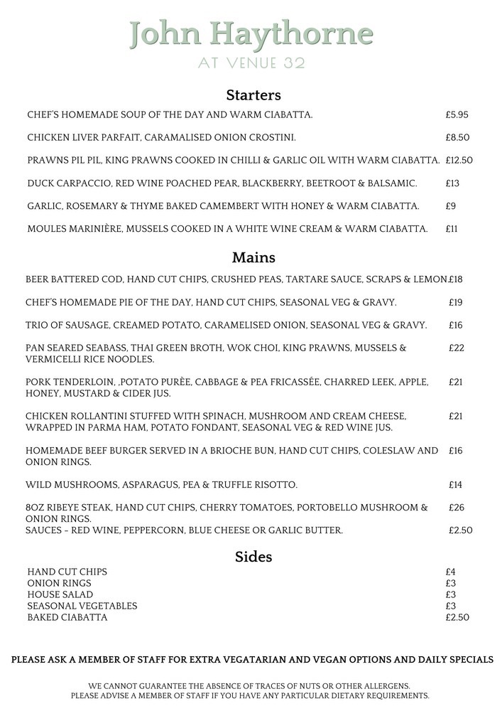 John is embarking on an exciting new journey by taking the helm of Venue 32’s kitchen, a thriving establishment in Birmingham. Venue 32 has flourished over the past 2 years. However, drawing from his experience as an award-winning chef working for established restaurants. To name a few, Le Champagne Sauvage, Roots York, and The Black Swan, Oldstead. John is well-equipped to elevate the culinary experience at Venue 32. Well known for his exquisite Creme Brulee and Sea Bass with Prawn Bisque, John is set to make his mark.